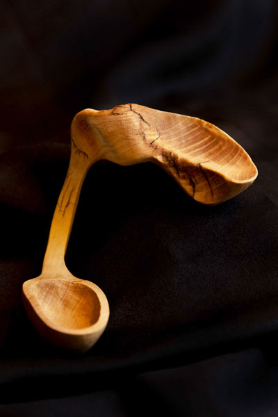 “All-Alaskan Easy Eating Spoon”. Black spruce; 9”H x 7” W x 4” D; 4/2009.